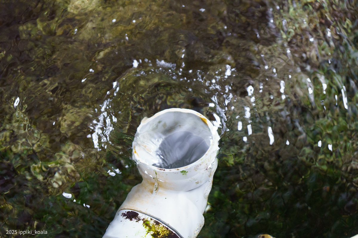 ただの湧き水といえばそうなのですが、地域の水場としてしっかり整備されていることが特徴です。段になっていて上から用途が変わるよう。