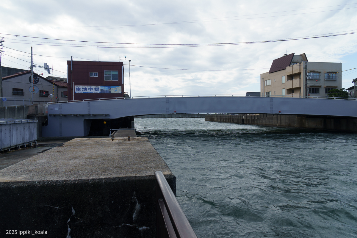 生地は黒部市にあり、YKKの企業城下町。よくあるただの漁村に対してインフラがしっかりしている印象を持ちました。道の駅の前にある黒部漁港もその一つ。もともとは河口にあった港湾施設を拡張してできたもの。船と車が通れるように旋回橋があったり、地下道があったりします。