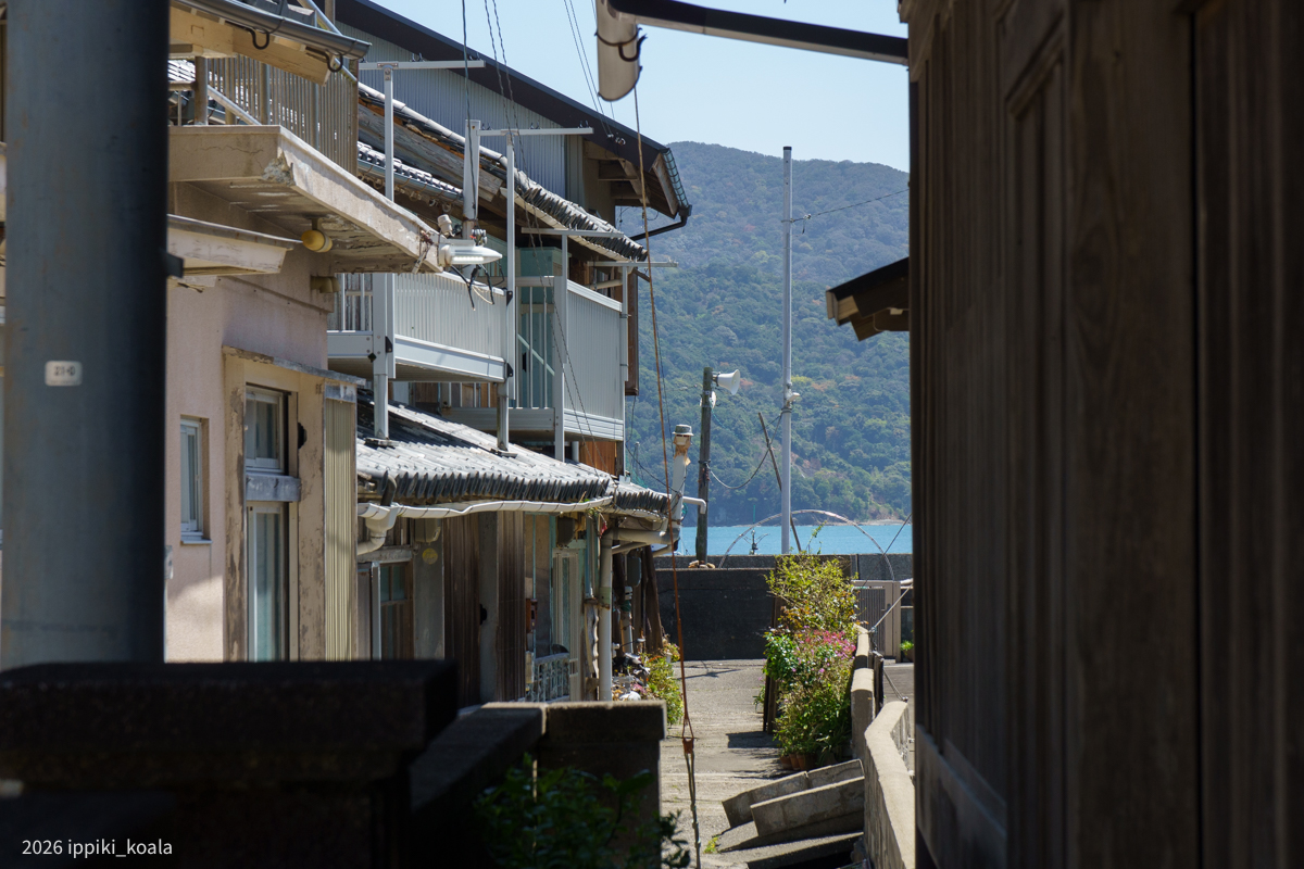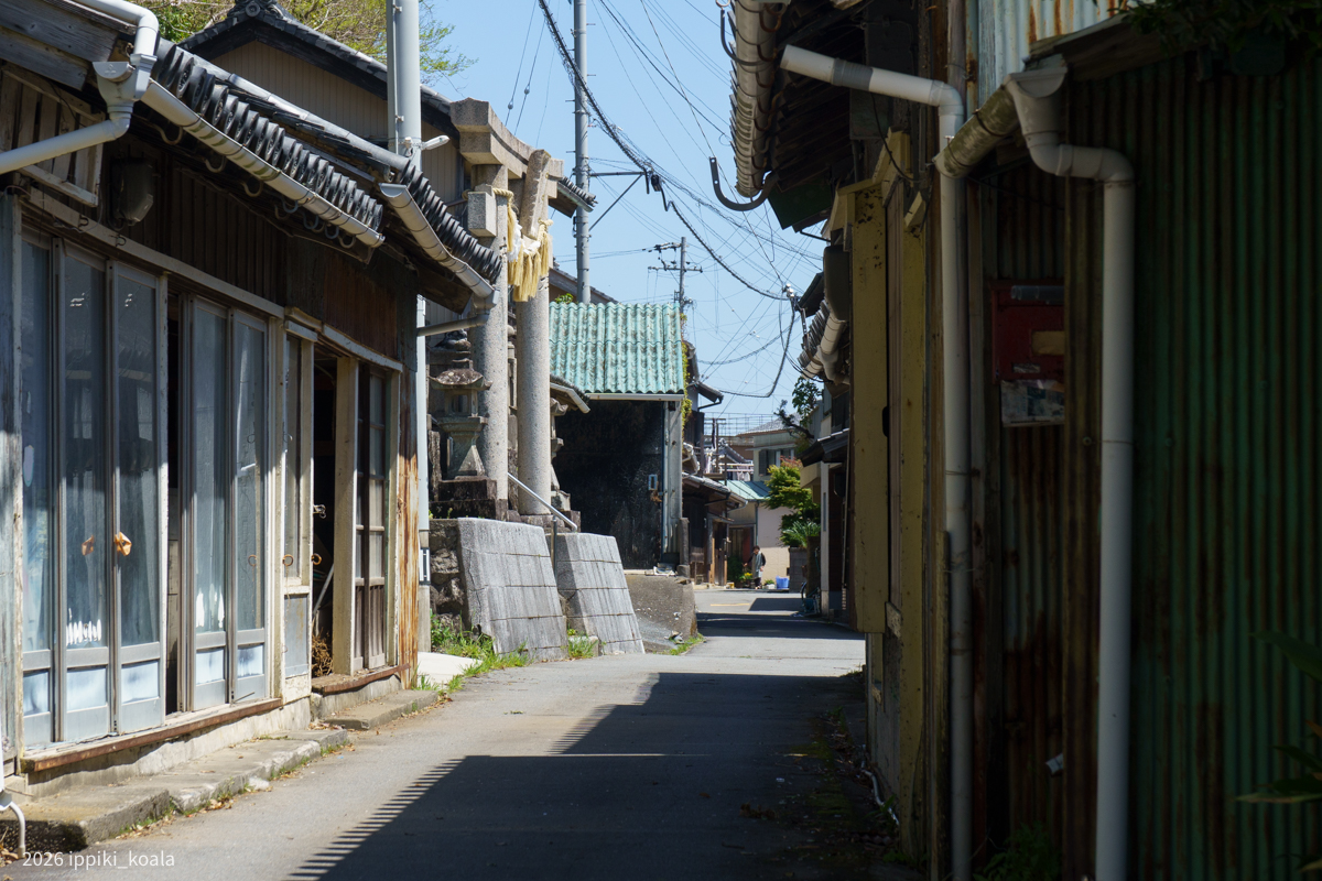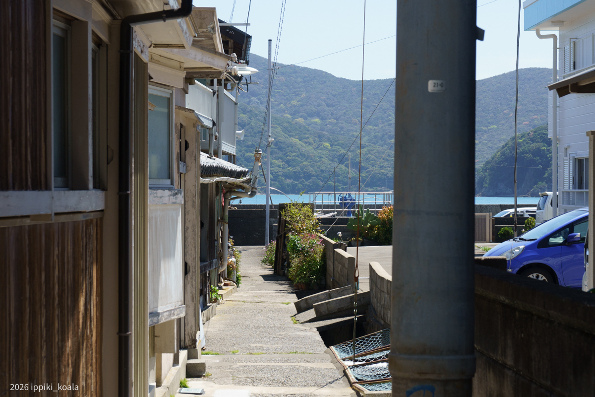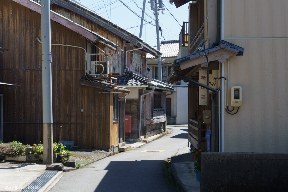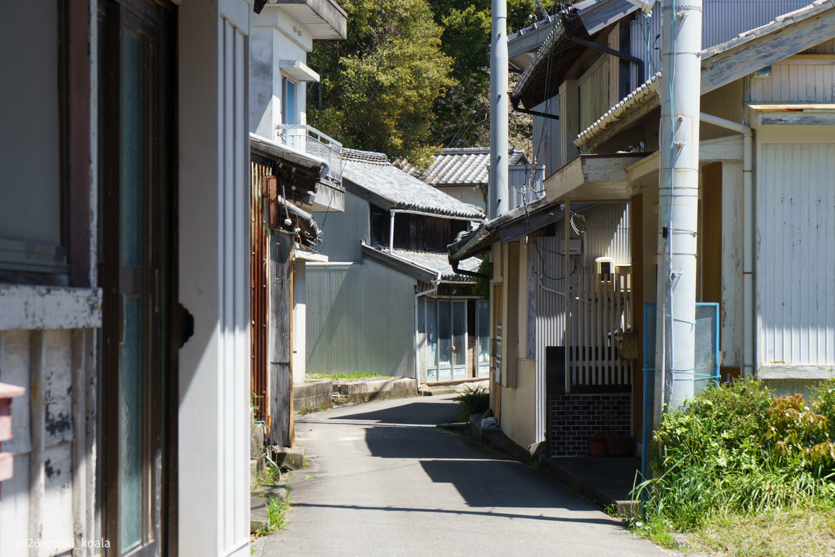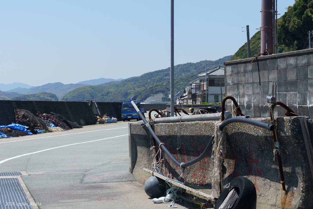 たまに車が通りますが、全体的に静かな漁村といった感じ。 青森のように吹きさらされて荒れた感じもなく、かといって瀬戸内の漁村のご老人たちが集まって話していることもなく、ただ平和な雰囲気。