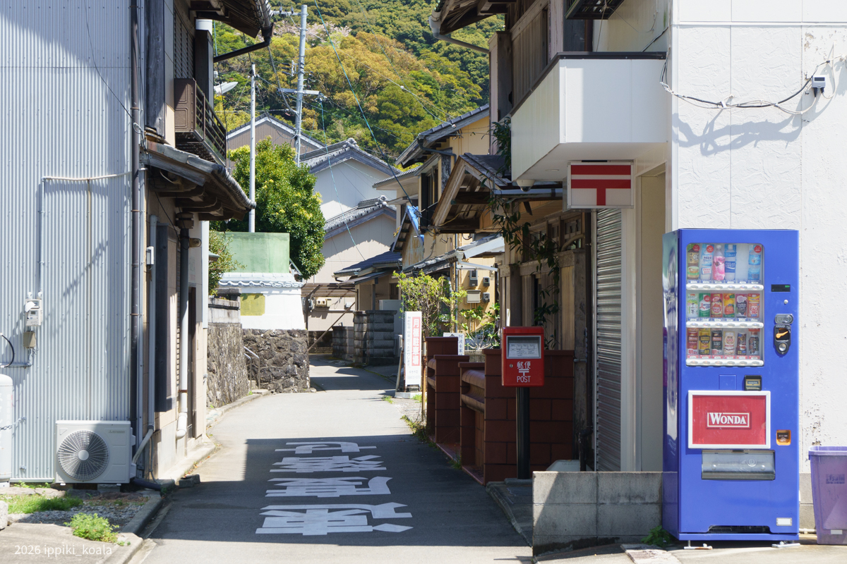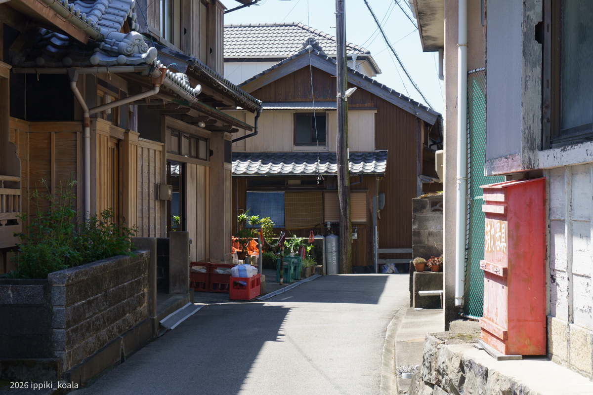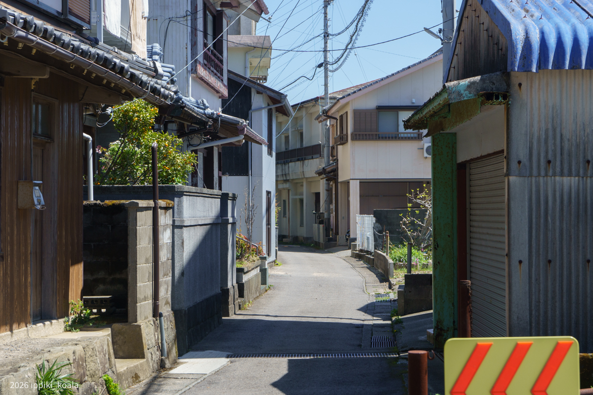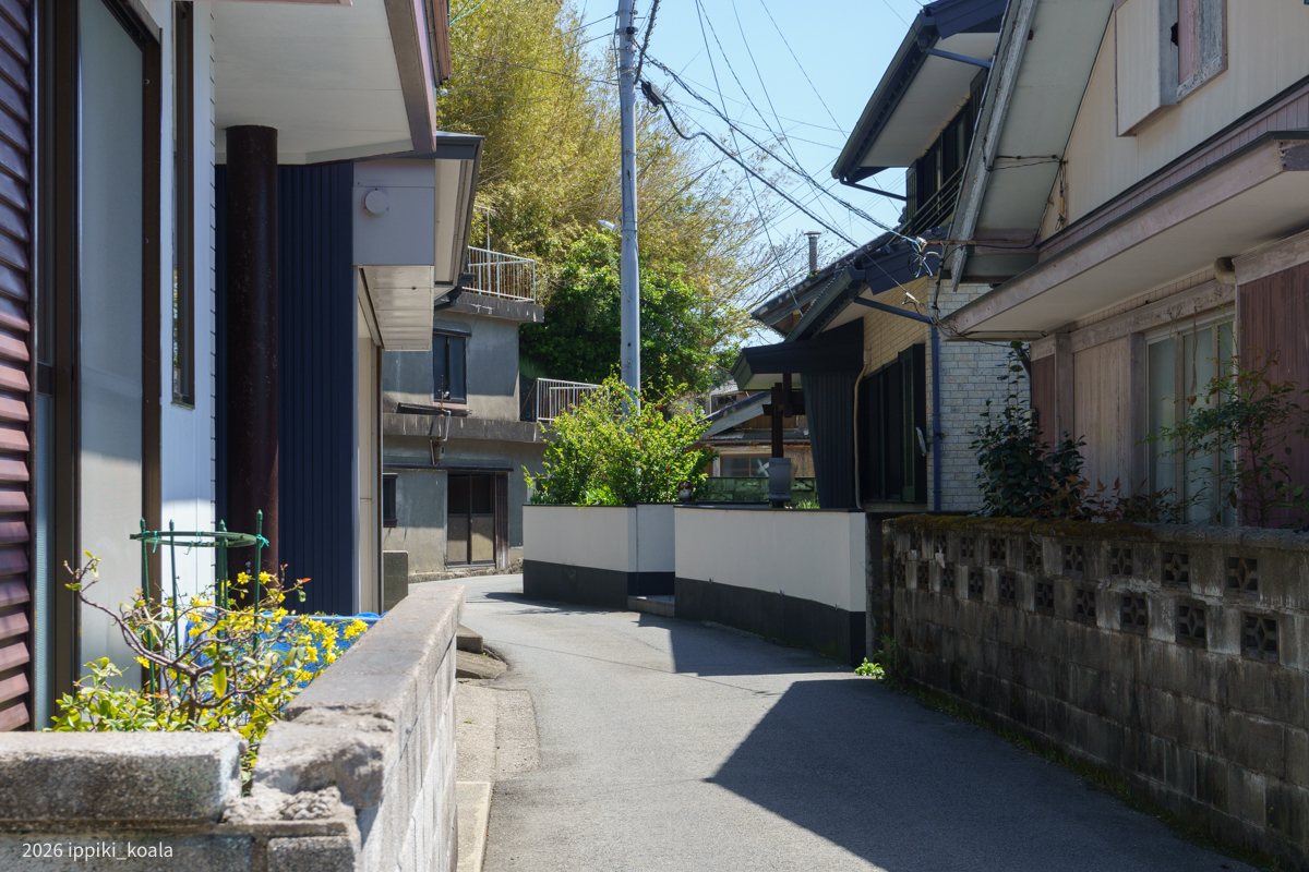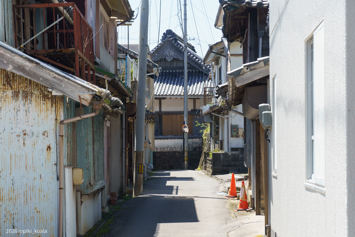 たまに車が通りますが、全体的に静かな漁村といった感じ。 青森のように吹きさらされて荒れた感じもなく、かといって瀬戸内の漁村のご老人たちが集まって話していることもなく、ただ平和な雰囲気。