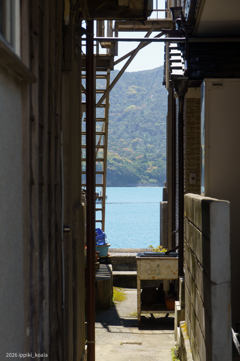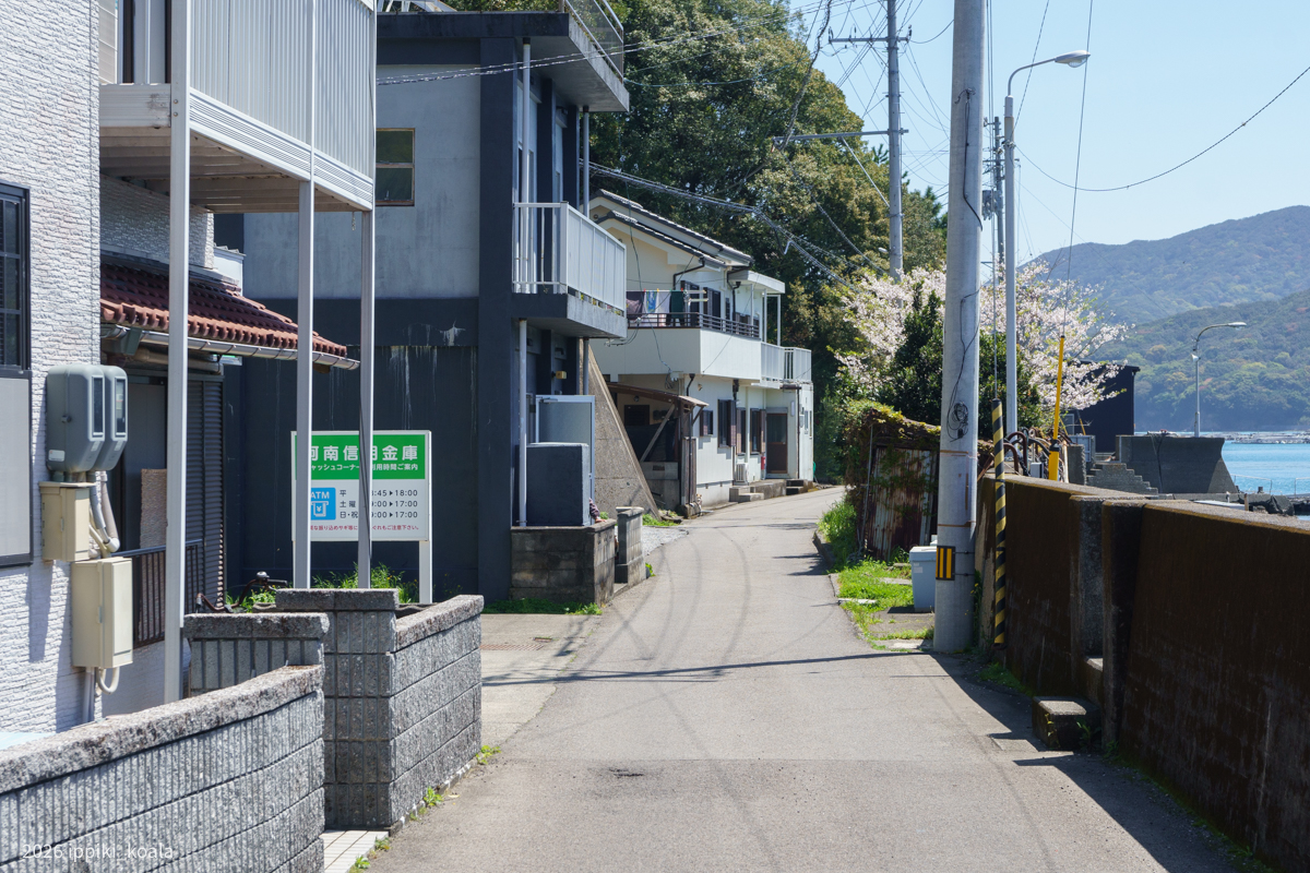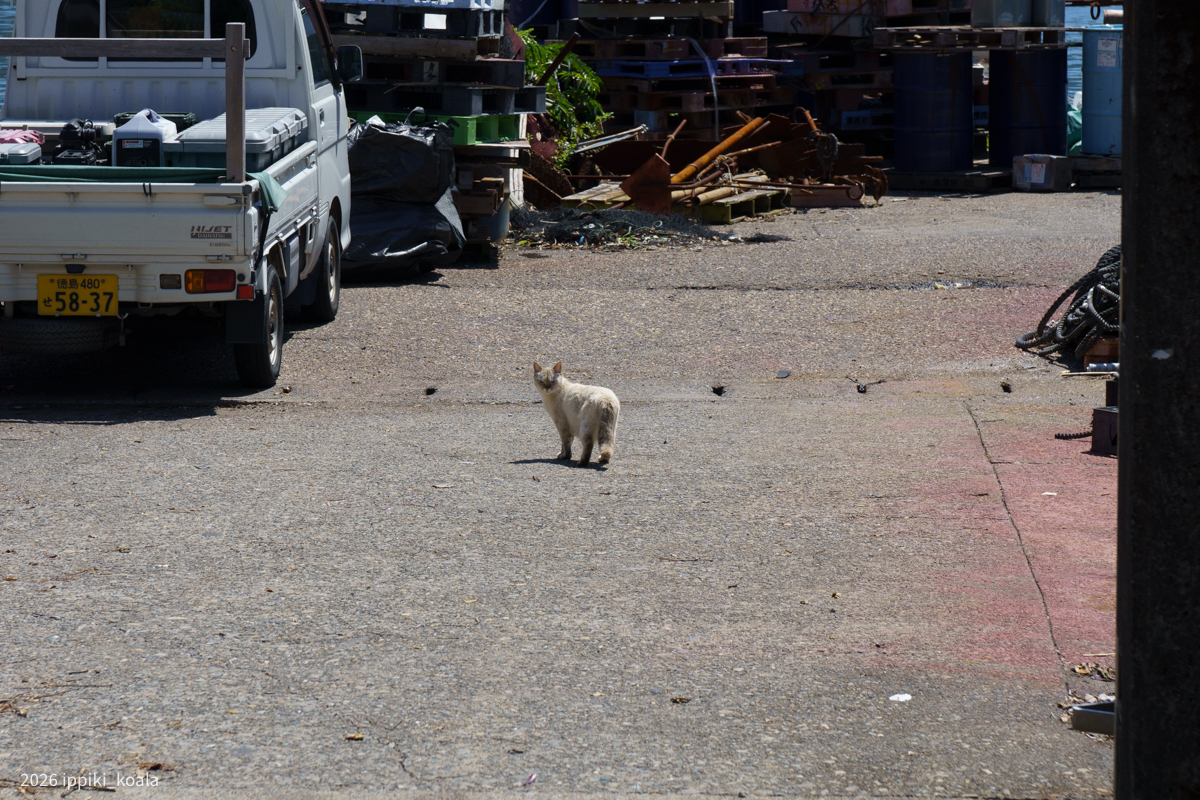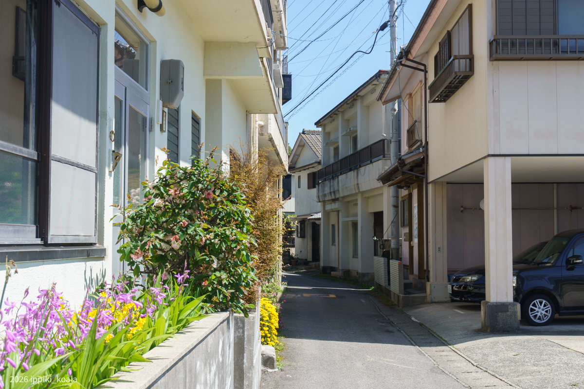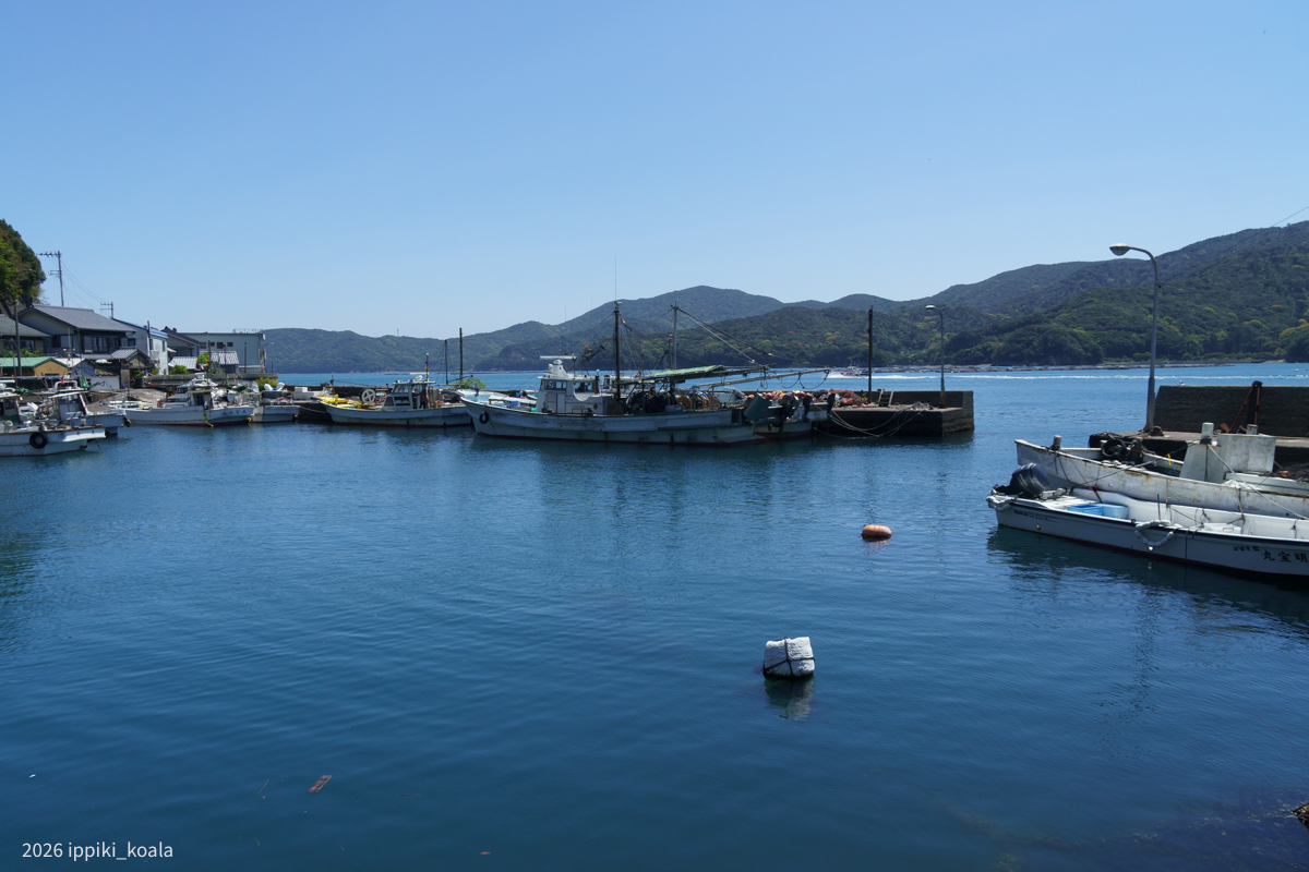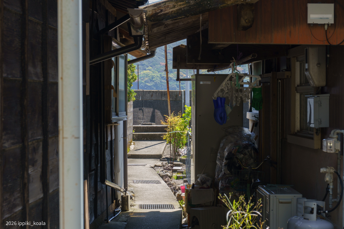 たまに車が通りますが、全体的に静かな漁村といった感じ。 青森のように吹きさらされて荒れた感じもなく、かといって瀬戸内の漁村のご老人たちが集まって話していることもなく、ただ平和な雰囲気。