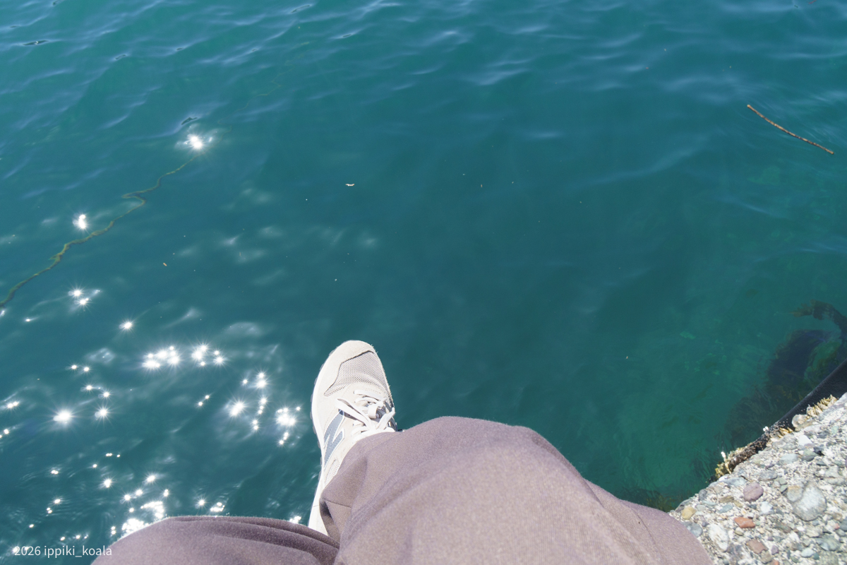 波のない海がキラキラしていました。人生悩んだら椿泊おすすめです。 日本海の荒波は人生のしんどさを思い浮かばせられるけど、ここは違うね。